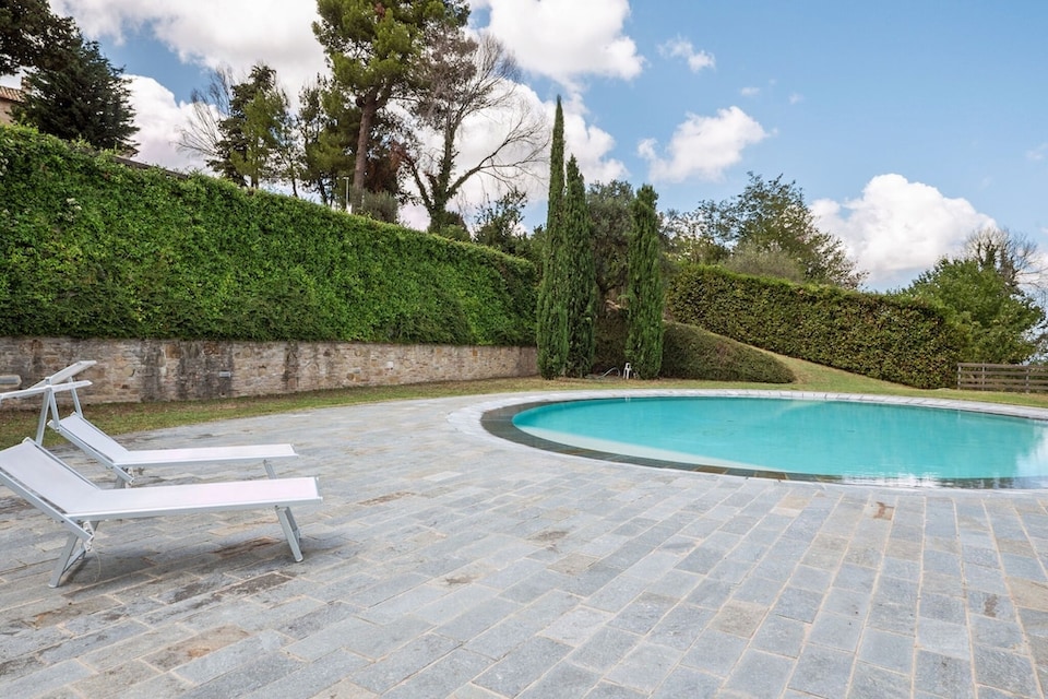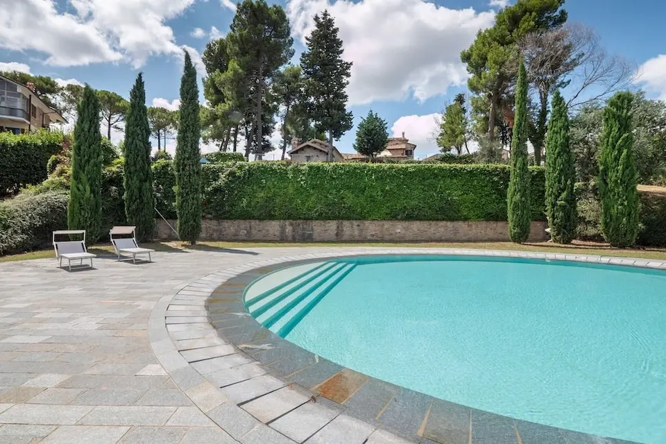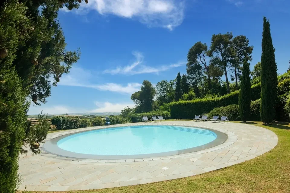 La casa è bellissima, super pulita e dispone di ogni comfort compreso il wifi e l'aria condizionata. All'esterno il giardino è fantastico e ci sono dei tavolini in ferro dove si può fare la colazione vista colline. La piscina è bellissima e dotata di lettini. Parcheggio all'interno del complesso. I proprietari sono fantastici e Alessandra è gentilissima e super disponibile. Che dire io mi sarei trasferita lì con tutta la famiglia. Mai visto niente di così bello!