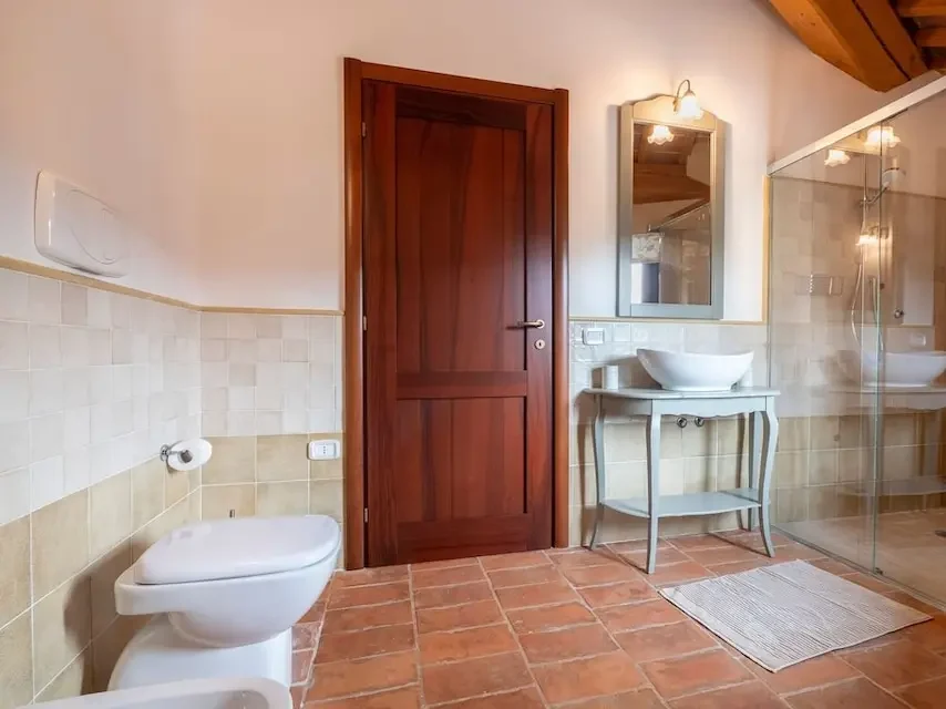 Un ampio bagno con doccia e l’aria condizionata in tutti gli ambienti garantiscono comfort durante la stagione estiva, gli interni fondono il fascino rustico con la semplicità moderna e la ricercatezza dei dettagli.