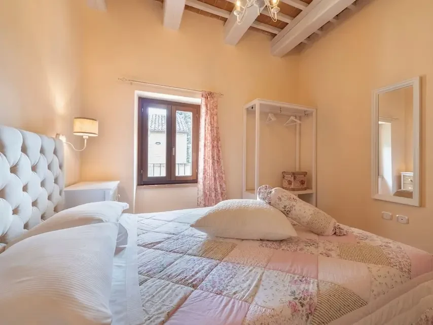 Appartamento in villa, antica e sapientemente ristrutturata, che si affaccia su un panorama incantevole, con in lontananza il mare. Posto di benessere, distante dal rumore e dalle luci, ma a pochissimi chilometri da ogni realtà marchigiane. Ci vorrebbero molti più luoghi, come questo, capaci di sopravvivere all'urbanizzazione sfrenata