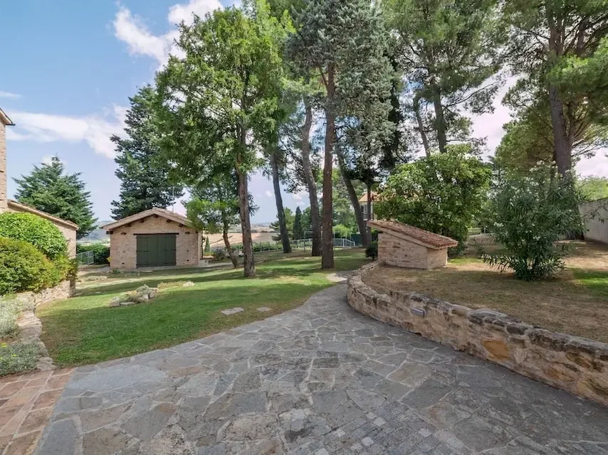 Situata in collina a Mombaroccio, la proprietà è composta da diversi appartamenti all’interno di una maestosa villa nobiliare del XVI secolo con ampio parco, parcheggio e area piscina comune.